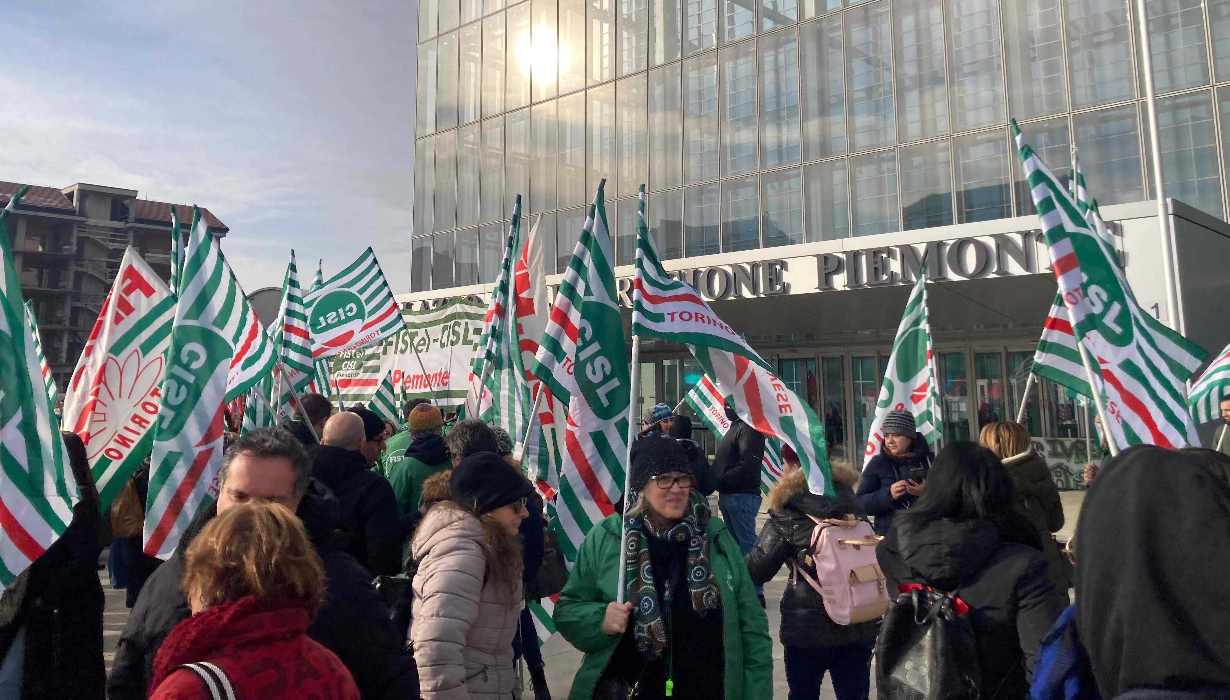 In piazza i 1600 dipendenti del gruppo contro la chiusura delle sedi di Ivrea e Asti. Incontro in Regione per evitare il peggio
